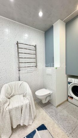 Изюминка квартиры: ванная комната, которая оборудована встроенной гардеробной, современной системой вентиляции, что придает помещению особый лоск и функциональность!
