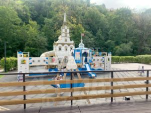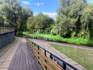 - вдоль реки обустроена набережная с ландшафтным дизайном и прогулочными дорожками из натуральных материалов.