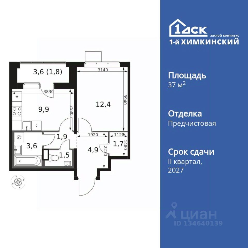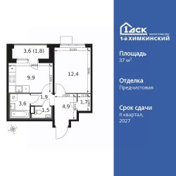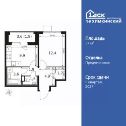 Продаётся 1-к квартира номер 99 общей площадью 37.7 кв.м. на 9-м этаже 17 этажного здания. Отделка Whitebox.