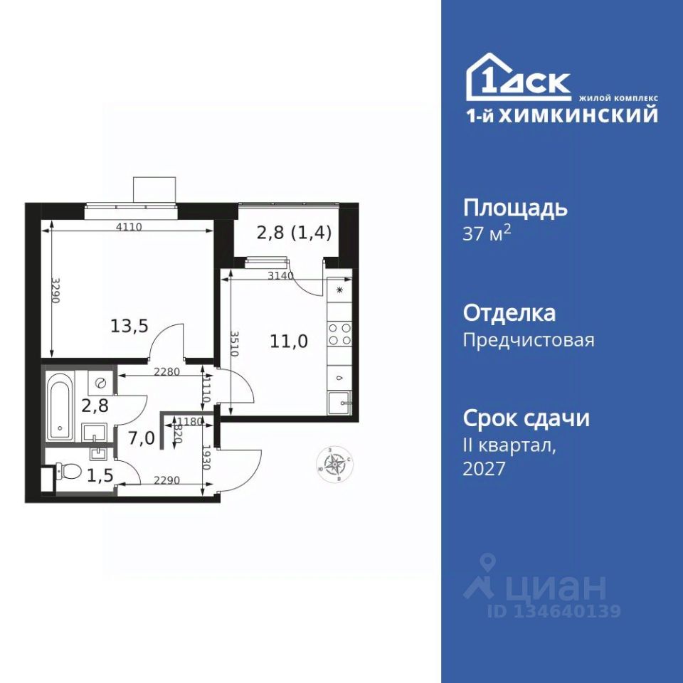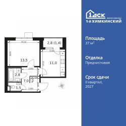 Продаётся 1-к квартира номер 166 общей площадью 37.2 кв.м. на 13-м этаже 17 этажного здания. Отделка Whitebox.