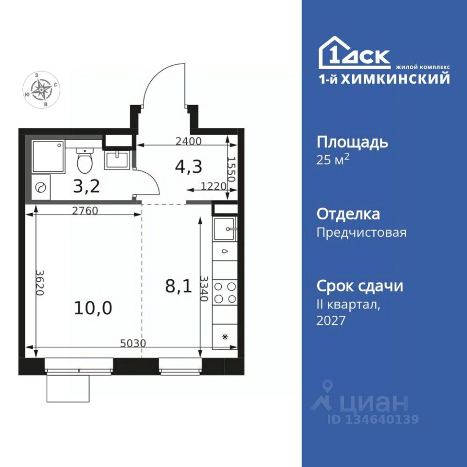 Продаётся квартира-студия номер 192 общей площадью 25.6 кв.м. на 15-м этаже 17 этажного здания. Отделка Whitebox.