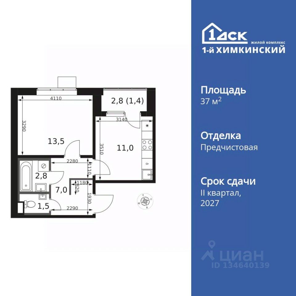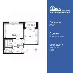 Продаётся 1-к квартира номер 194 общей площадью 37.2 кв.м. на 15-м этаже 17 этажного здания. Отделка Whitebox.
