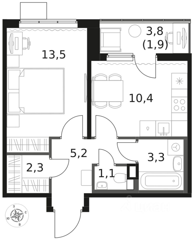 - Раздельный санузел - больше удобства для всех членов семьи.