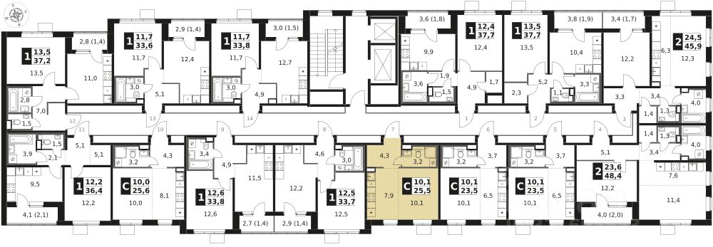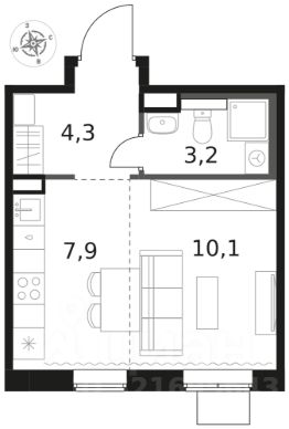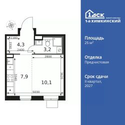 Продаётся квартира-студия номер 217 общей площадью 25.5 кв.м. на 17-м этаже 17 этажного дома. Отделка Whitebox.