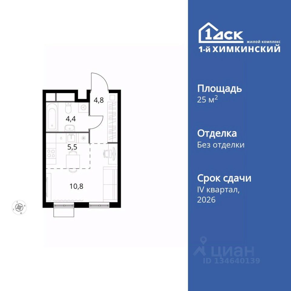 Продаётся квартира-студия номер 380 общей площадью 25.5 кв.м. на 12-м этаже 12 этажного здания. Без отделки.
