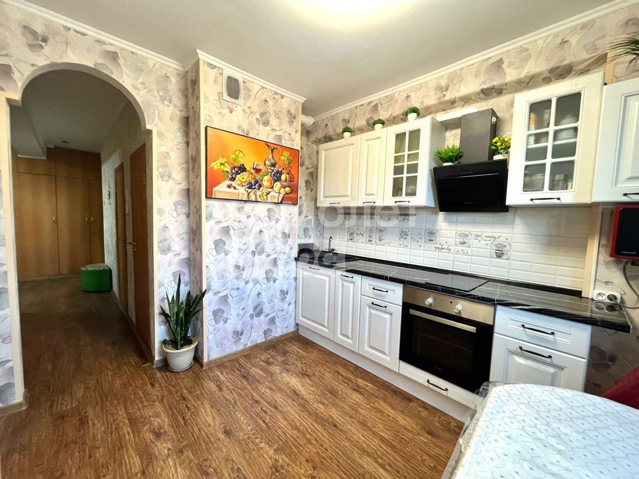 Сделан ремонт в спокойных светлых тонах, остается кухонный гарнитур, вытяжка, варочная панель, духовой шкаф, в прихожей вместительный шкаф, 2 застекленные лоджии.