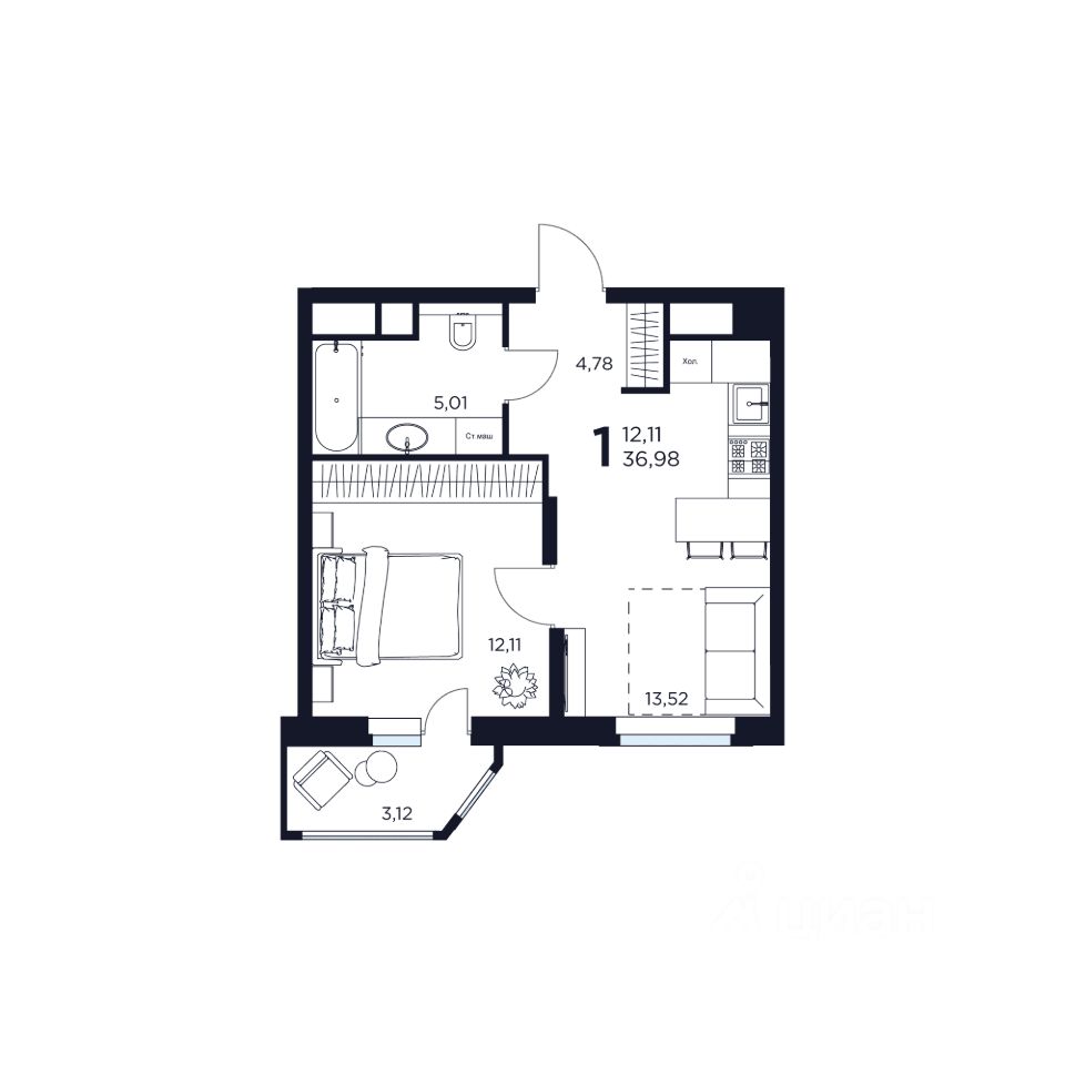Продаётся 1-комнатная квартира в строящемся доме (Дом 7), срок сдачи: II-кв. 2027, общей площадью 36.98 кв.м., на 15 этаже. Новый жилой комплекс "ВОСТОК II" от застройщика "Новое Время - Химки" расположен по адресу: Московская область, Химки, улица Германа Титова, 2