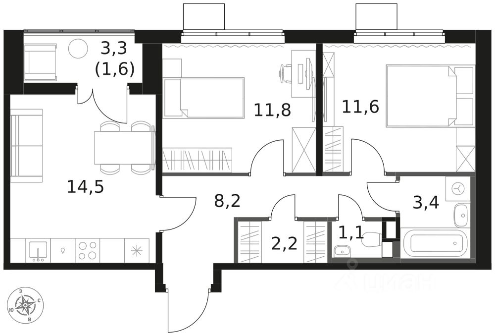 Продаётся 2-к квартира номер 310 общей площадью 54.4 кв.м. на 14-м этаже 14 этажного дома. Чистовая отделка.