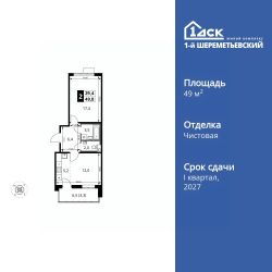 Продаётся 2-к квартира номер 943 общей площадью 49.8 кв.м. на 9-м этаже 16 этажного здания. Чистовая отделка. Цена с учётом скидки.