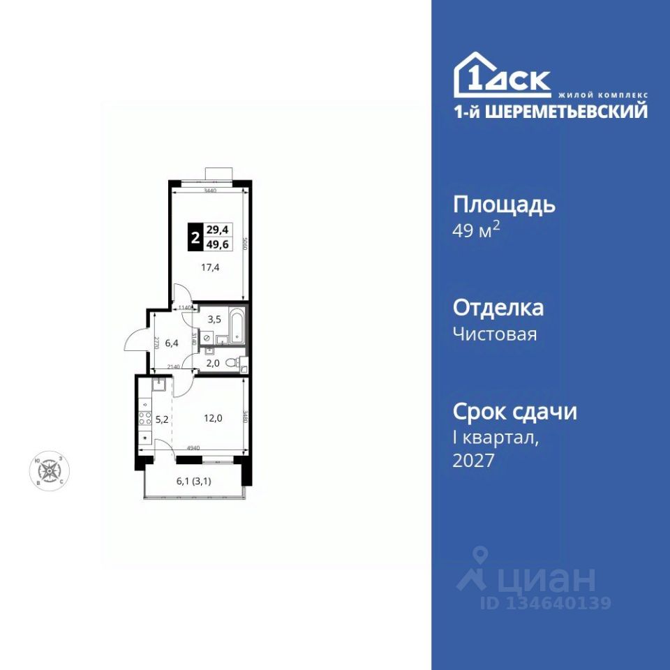 Продаётся 2-к квартира номер 871 общей площадью 49.6 кв.м. на 3-м этаже 16 этажного здания. Чистовая отделка. Цена с учётом скидки.