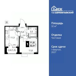 Продаётся 1-к квартира номер 1070 общей площадью 32.9 кв.м. на 10-м этаже 16 этажного дома. Чистовая отделка. Цена с учётом скидки!