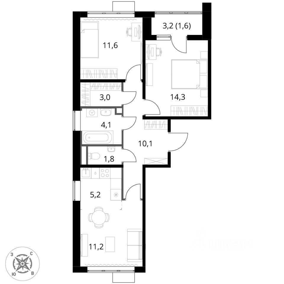 Продаётся 3-к квартира номер 1087 общей площадью 62.9 кв.м. на 14-м этаже 16 этажного дома. Чистовая отделка. Цена с учётом скидки!