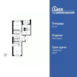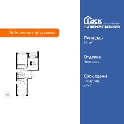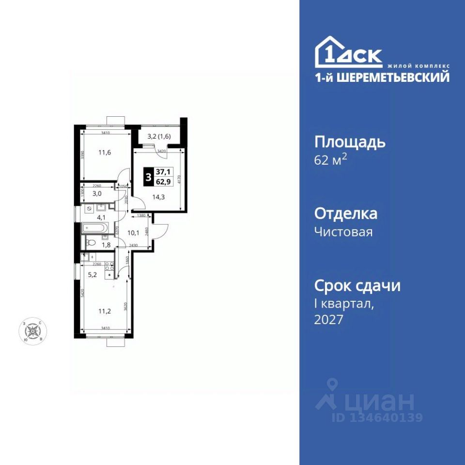 Продаётся 3-к квартира номер 1087 общей площадью 62.9 кв.м. на 14-м этаже 16 этажного здания. Чистовая отделка. Цена с учётом скидки.