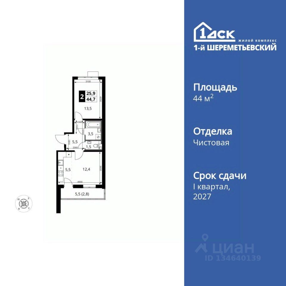 Продаётся 2-к квартира номер 770 общей площадью 44.9 кв.м. на 14-м этаже 16 этажного здания. Чистовая отделка. Цена с учётом скидки.