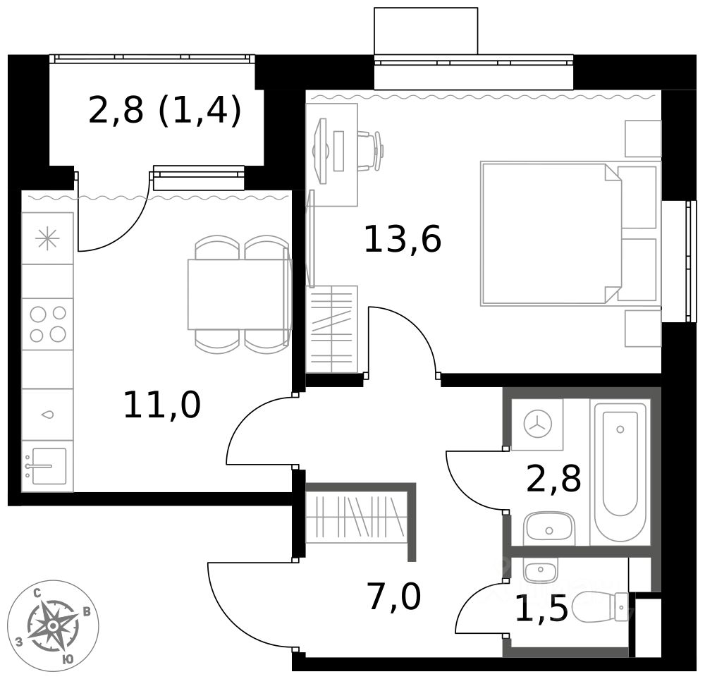 Продаётся 1-к квартира номер 157 общей площадью 37.3 кв.м. на 13-м этаже 17 этажного дома. Отделка Whitebox. Цена с учётом скидки!