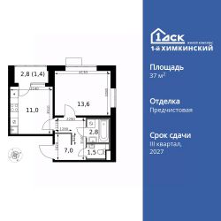 Продаётся 1-к квартира номер 157 общей площадью 37.3 кв.м. на 13-м этаже 17 этажного здания. Отделка Whitebox. Цена с учётом скидки.