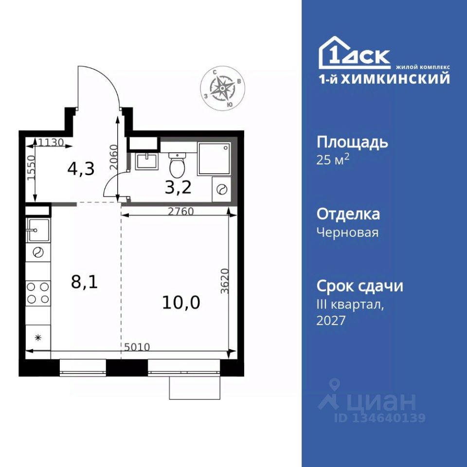 Продаётся 1-к квартира номер 47 общей площадью 25.6 кв.м. на 5-м этаже 17 этажного дома. Отделка Whitebox. Цена с учётом скидки!