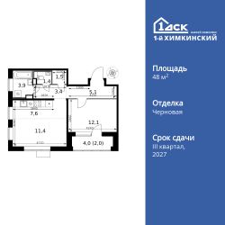 Продаётся 2-к квартира номер 109 общей площадью 48.4 кв.м. на 9-м этаже 17 этажного дома. Отделка Whitebox. Цена с учётом скидки!