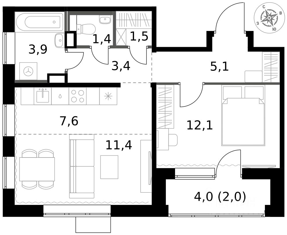 - Раздельный санузел - больше удобства для всех членов семьи.