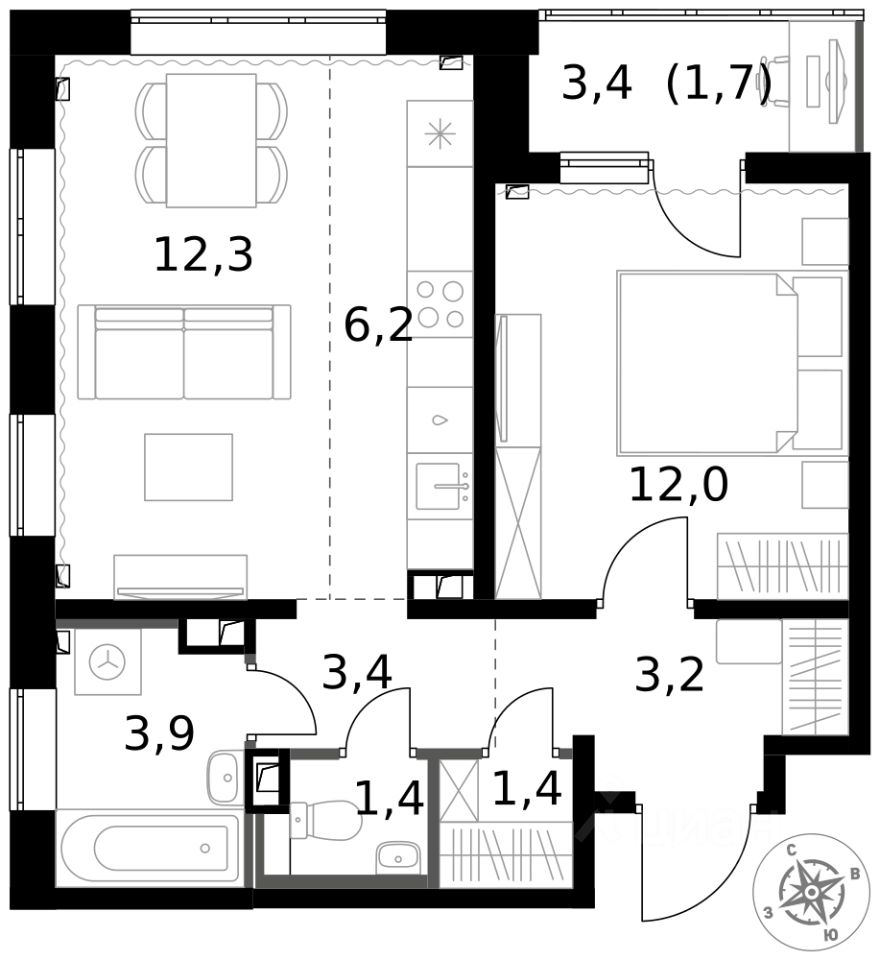 - Евроформат - просторное и удобное жилье с отличной планировкой.