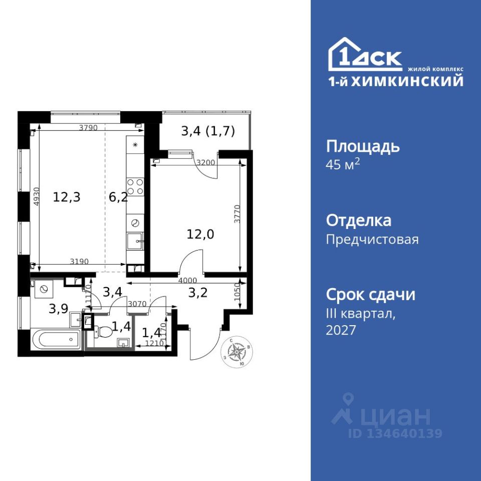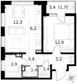 Продаётся 2-к квартира номер 12 общей площадью 45.5 кв.м. на 2-м этаже 17 этажного здания. Отделка Whitebox. Цена с учётом скидки.