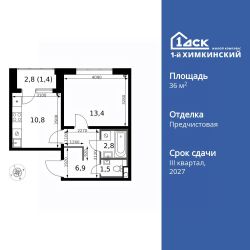 Продаётся 1-к квартира номер 3 общей площадью 36.8 кв.м. на 2-м этаже 17 этажного здания. Отделка Whitebox. Цена с учётом скидки.