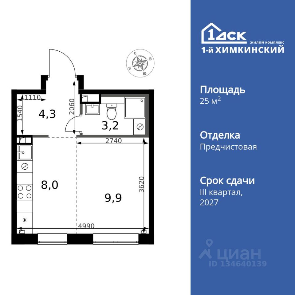 Продаётся квартира-студия номер 5 общей площадью 25.4 кв.м. на 2-м этаже 17 этажного здания. Отделка Whitebox. Цена с учётом скидки.