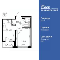 Продаётся 1-к квартира номер 6 общей площадью 33.3 кв.м. на 2-м этаже 17 этажного дома. Отделка Whitebox. Цена с учётом скидки!