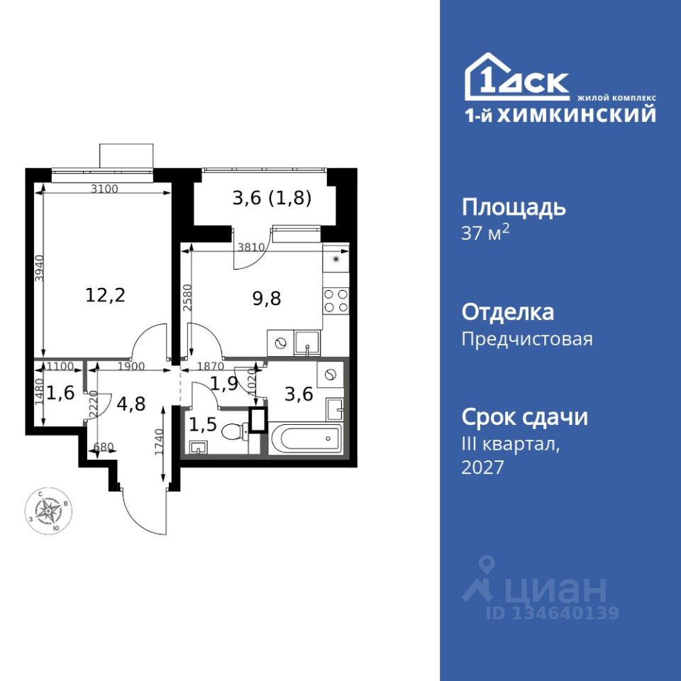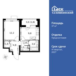 Продаётся 1-к квартира номер 28 общей площадью 37.2 кв.м. на 3-м этаже 17 этажного здания. Отделка Whitebox. Цена с учётом скидки.