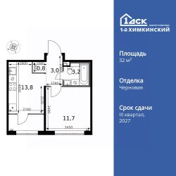 Продаётся 1-к квартира номер 259 общей площадью 32.5 кв.м. на 2-м этаже 6 этажного дома. Отделка Whitebox. Цена с учётом скидки!