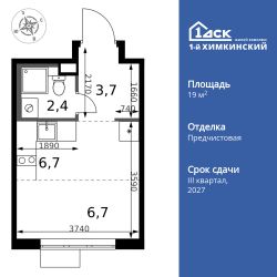 Продаётся квартира-студия номер 297 общей площадью 19.5 кв.м. на 6-м этаже 6 этажного здания. Отделка Whitebox. Цена с учётом скидки.