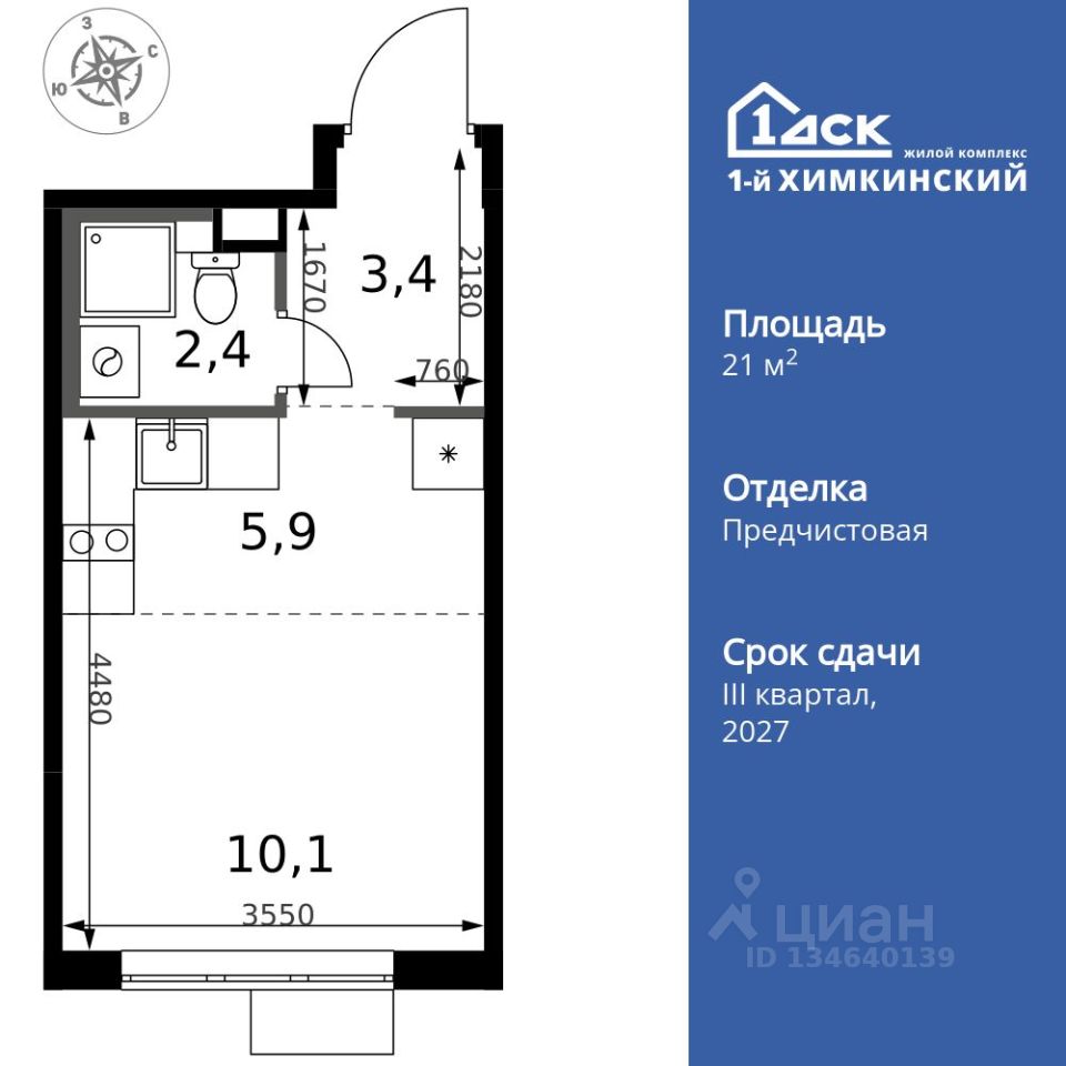 Продаётся квартира-студия номер 330 общей площадью 21.8 кв.м. на 5-м этаже 6 этажного здания. Отделка Whitebox. Цена с учётом скидки.