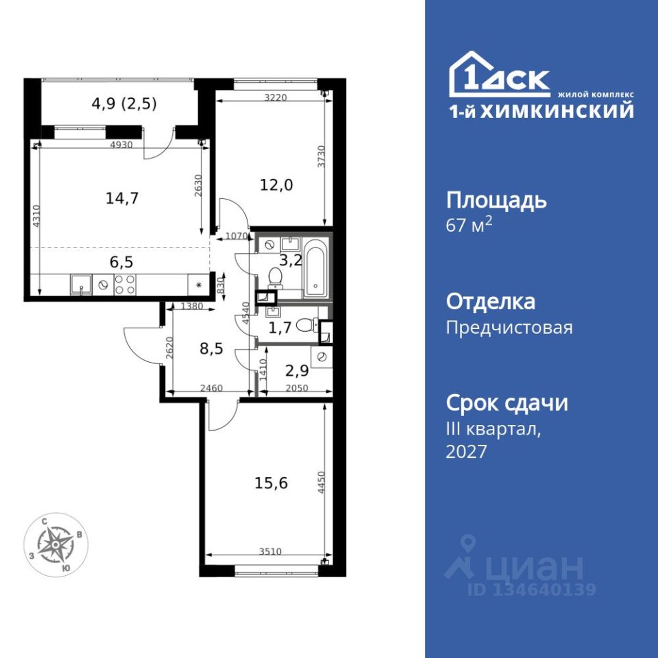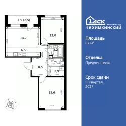 Продаётся 3-к квартира номер 491 общей площадью 67.6 кв.м. на 2-м этаже 7 этажного здания. Отделка Whitebox. Цена с учётом скидки.