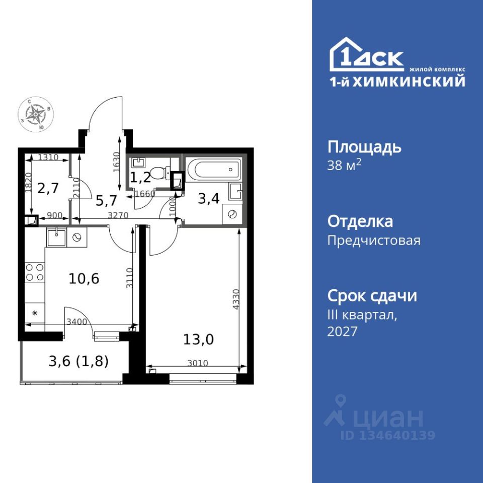 Продаётся 1-к квартира номер 516 общей площадью 38.4 кв.м. на 2-м этаже 13 этажного дома. Отделка Whitebox. Цена с учётом скидки!