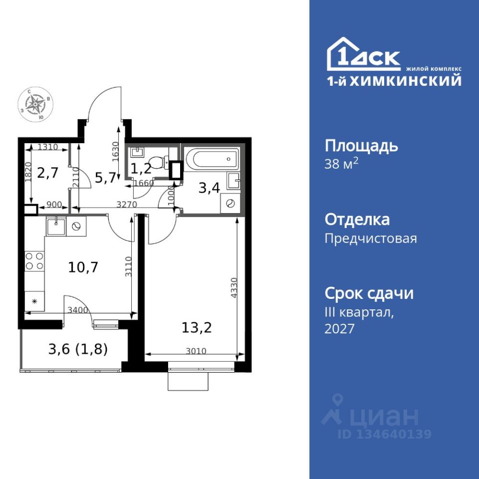 Продаётся 1-к квартира номер 532 общей площадью 38.7 кв.м. на 6-м этаже 13 этажного здания. Отделка Whitebox. Цена с учётом скидки.