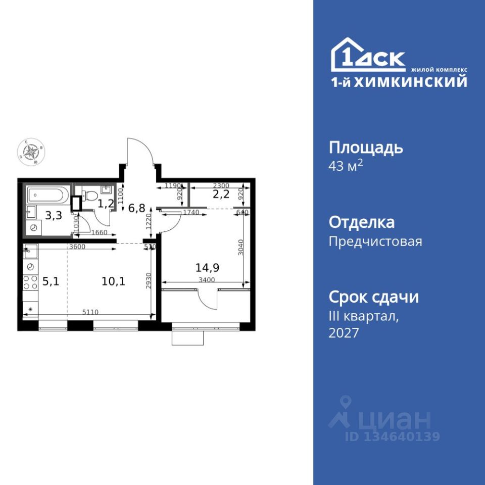 Продаётся 2-к квартира номер 609 общей площадью 43.6 кв.м. на 13-м этаже 16 этажного здания. Отделка Whitebox. Цена с учётом скидки.