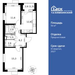 Продаётся 2-к квартира номер 622 общей площадью 56.2 кв.м. на 16-м этаже 16 этажного здания. Отделка Whitebox. Цена с учётом скидки.