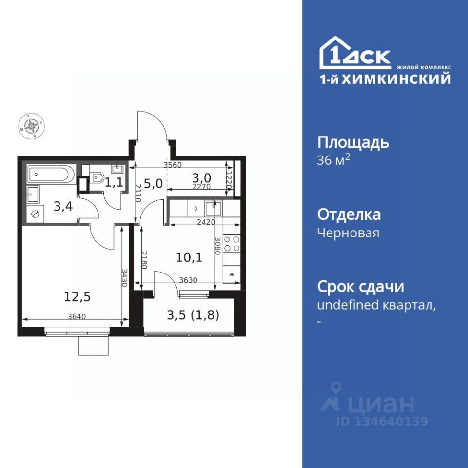 Продаётся 1-к квартира номер 634 общей площадью 36.9 кв.м. на 14-м этаже 17 этажного дома. Отделка Whitebox.