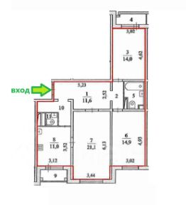 Продается 3-комнатная квартира. Три изолированные комнаты: 21,1-14,9-14,0 кв.м., кухня 11,0 кв.м., два санузла, две лоджии с выходом из кухни и одной из спален, просторный коридор.
