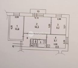 Квартира расположена на 5 этаже 9-этажного кирпичного дома 1969 года постройки.