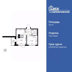 Продаётся 1-к квартира номер 948 общей площадью 39.8 кв.м. на 9-м этаже 16 этажного дома. Чистовая отделка. Цена с учётом скидки!