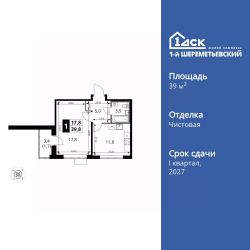 Продаётся 1-к квартира номер 948 общей площадью 39.8 кв.м. на 9-м этаже 16 этажного здания. Чистовая отделка. Цена с учётом скидки.