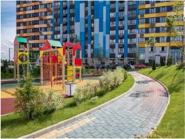 В Жилом Комплексе закрытый внутренний двор. Обустроенные площадки, скейт-парт, магазины, кафе, аптека, площадка для выгула собак, ландшафтные парки и прогулочные зоны, футбольная и баскетбольная площадки и многое другое.