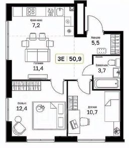 Квартира с чистовой отделкой, просторная кухня- гостиная и две отдельные спальни.