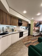 - Кухонный гарнитур со встроенной техникой: духовой шкаф, варочная индукционная панель, вытяжка, холодильник, посудомоечная машина. - Стиральная машина ( 9КГ ), водонагреватель.
