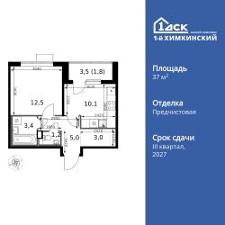 Продаётся 1-к квартира номер 301 общей площадью 37 кв.м. на 6-м этаже 6 этажного дома. Отделка Whitebox. Цена с учётом скидки!
