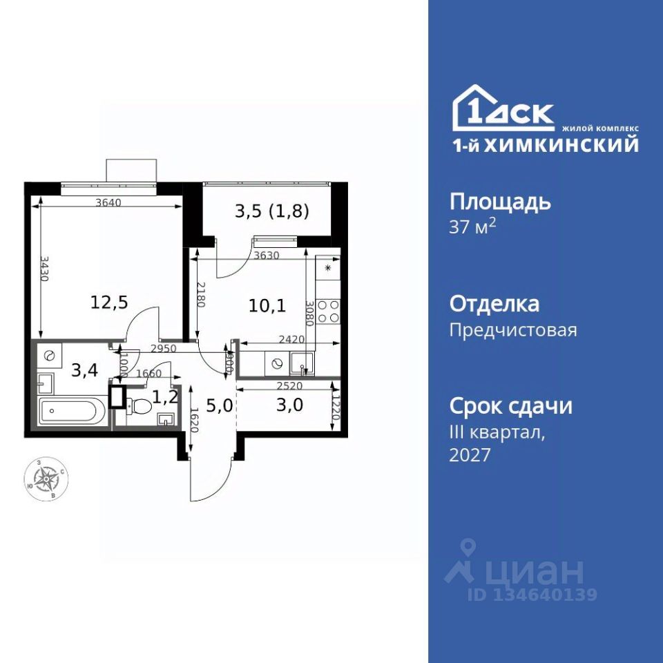 Продаётся 1-к квартира номер 301 общей площадью 37 кв.м. на 6-м этаже 6 этажного здания. Отделка Whitebox. Цена с учётом скидки.