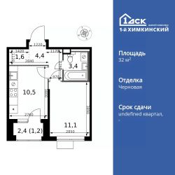 Продаётся 1-к квартира номер 346 общей площадью 32.2 кв.м. на 6-м этаже 6 этажного дома. Отделка Whitebox. Цена с учётом скидки!