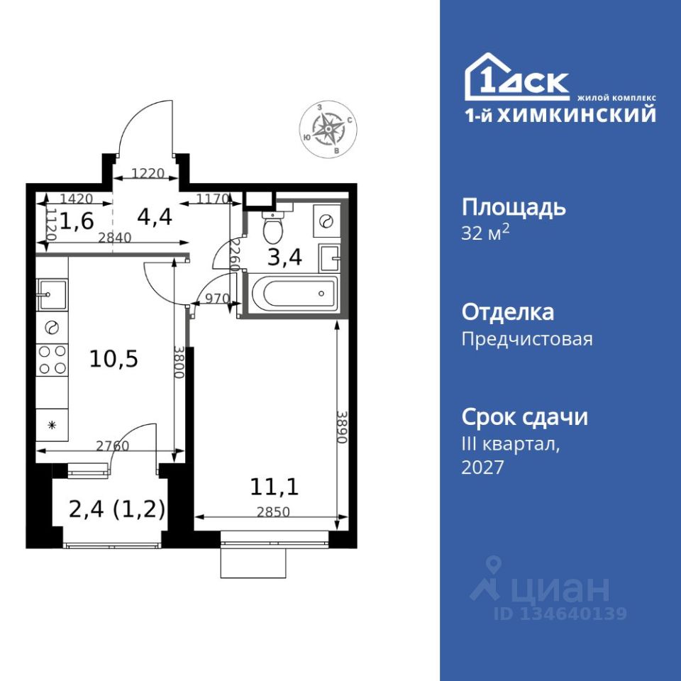 Продаётся 1-к квартира номер 346 общей площадью 32.2 кв.м. на 6-м этаже 6 этажного здания. Отделка Whitebox. Цена с учётом скидки.