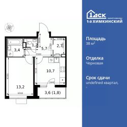 Продаётся 1-к квартира номер 561 общей площадью 38.7 кв.м. на 13-м этаже 13 этажного дома. Отделка Whitebox. Цена с учётом скидки!